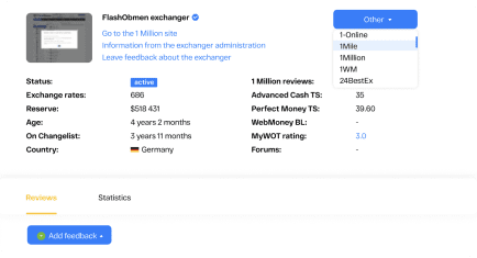 Carefully read feedback from users. The moderators of the BestChange system thoroughly monitor the ratings and exclude unreliable exchangers from the system, but it is feedback from Changelist and MyWOT users that can be the quickest way to learn about a poor service.