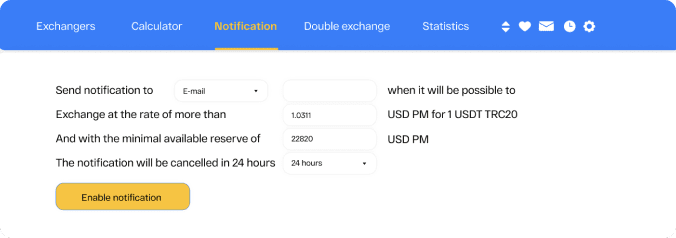 If you fail to find an exchanger with the suitable rates, subscribe to our notifications and we will let you know about it as soon as it is available.